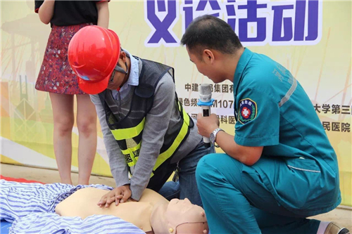 醫生們一邊操作,一邊講解,工人們有不明白的,還可以現場提問。幾乎每一位認真學習的建筑工人都想一試身手,醫生則在一旁一對一指導。