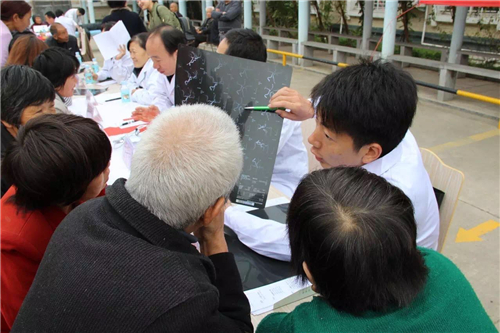 雖然天氣轉涼,但絲毫沒有澆熄大家的熱情,當地的居民早早來到義診現場,等候省會頂尖醫院專家為自己診斷,專家們也是十分準時,提前到現場為患者看診。