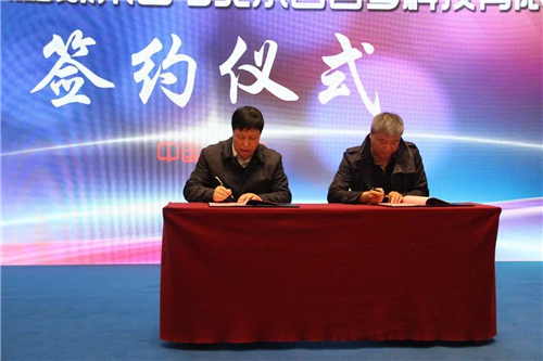 ▲河南電視臺新農村頻道張克宣總監與北京吉客多科技有限公司總經理周宏志進行簽約