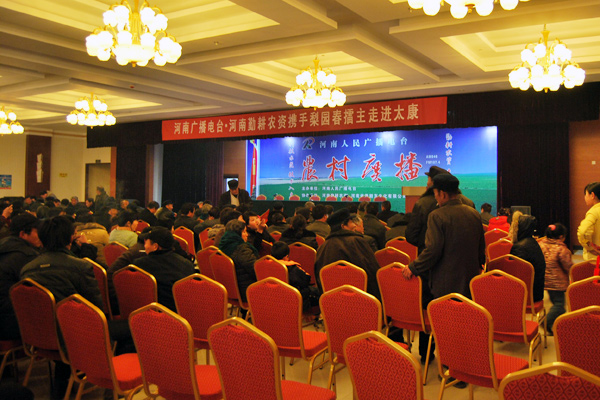 為凈化農資市場、保護農民利益、服務農業(yè)生產,河南電臺農村廣播成功舉辦——“3.15放心農資下鄉(xiāng)進村活動”。3月14日清晨冒雨趕赴河南省周口市太康縣,邀請省會相關職能部門領導現(xiàn)場宣傳科學種田知識,現(xiàn)場抽獎為當地農民發(fā)放放心農資。并邀請河南勤耕農資等企業(yè)、文化界相關人士帶去精彩的互動與節(jié)目演出。戲曲、魔術、雜技、變臉、抽獎等穿插互動!精彩紛呈!高潮迭起!當天從周口各地聞訊冒雨趕來的農民把活動現(xiàn)場擠得水泄不通,鄉(xiāng)親們臉上洋溢著滿意的笑容,雖然天氣驟冷,但現(xiàn)場互動把氣氛一次次推向了高潮!在歡聲笑語中,大家不僅對今年3.15的主題“消費與服務”有了更深層次的理解,而且對農村廣播的“心連心”惠農活動更加喜愛并充滿期待!