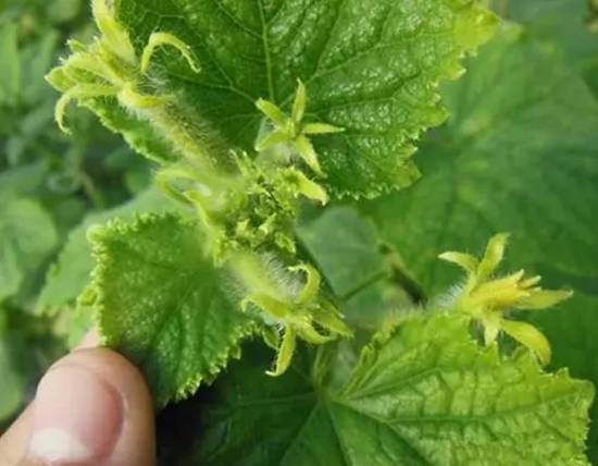 當氣溫降低后,尤其是伴隨雨雪天氣發生時,由于太陽光輻射減少會導致地溫降低,這樣一來植物的地上組織和地下根系的呼吸作用都會下降,呼吸下降后生理代謝就會緩慢,植物吸收肥水的能力就會減弱,如果此時作物正處于苗期則易出現僵苗的現象;如果處于開花座果期,則常常表現為各種生理性病害的發生,如花打頂。這種癥狀在黃瓜等瓜類蔬菜上最為常見,即植株的生長點積在大量雌花或小瓜,植株停止生長?;ù蝽數某霈F是由于低溫促使了花芽過度分化,雌花數量增加,而植株缺乏足夠的養分供其生長,蔓不能伸長,造成雌花生在在植株的頂端。
