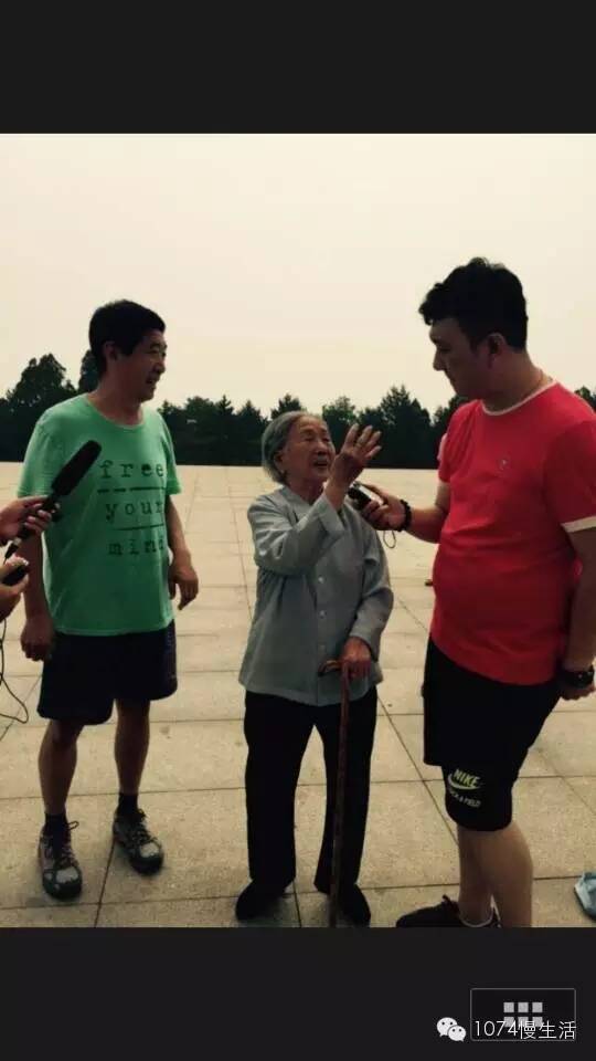 在這次聯和采訪中,來自晉冀魯豫的記者被一位老奶奶吸引住了, 一個健步奔向這位老奶奶。我們發現她在百團大戰英雄紀念碑碑前鞠躬三下。了解后才知道老奶奶叫甄永蘭,91歲,18歲來到陽泉居住了無數個歲月。她識字,用山西話給我念出了碑上的每一個大字。今天是盧溝橋事變的紀念日,心情無比激動。
