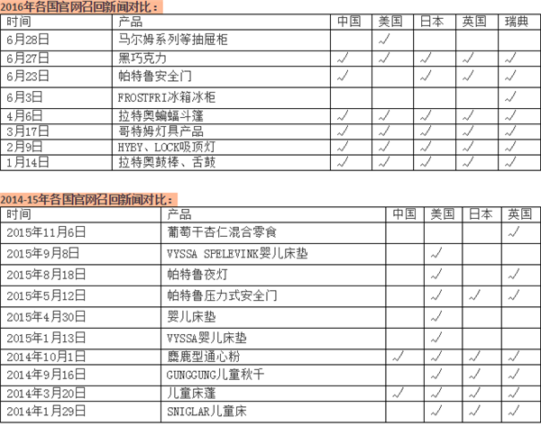 數據顯示,2016年宜家產品召回中,中國有兩次未與其他國家同步,包括FROSTFRI冰箱和馬爾姆系列等抽屜柜。而在2014-2015年間,宜家10類產品召回,8次不涉及中國。相比之下,美國僅有一次被“落下”。