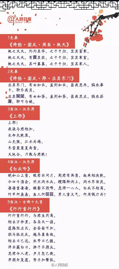 “愿得一心人,白頭不相離”,“從此無心愛良夜,任他明月下西樓”,“一川煙草,滿城風絮,梅子黃時雨”……