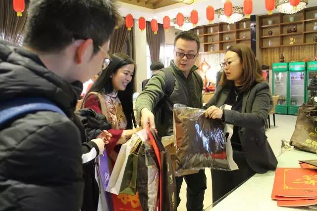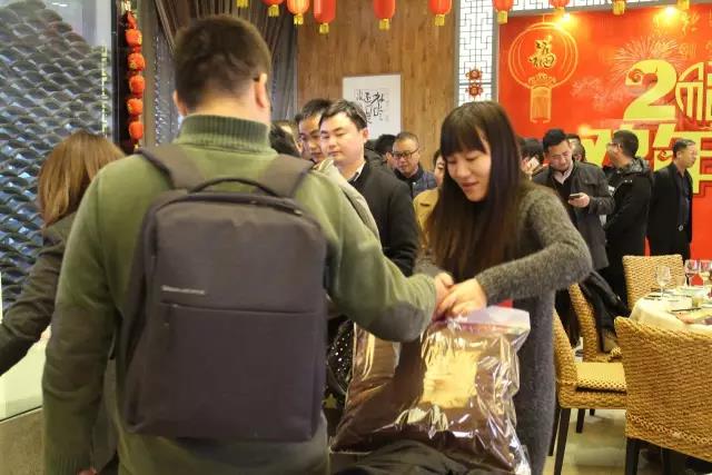 懇談會接近尾聲,1074團隊的雁南、劉楠、鶴鳴,為大家分發伴手禮。當然這都是由當天的各位老板提供的。