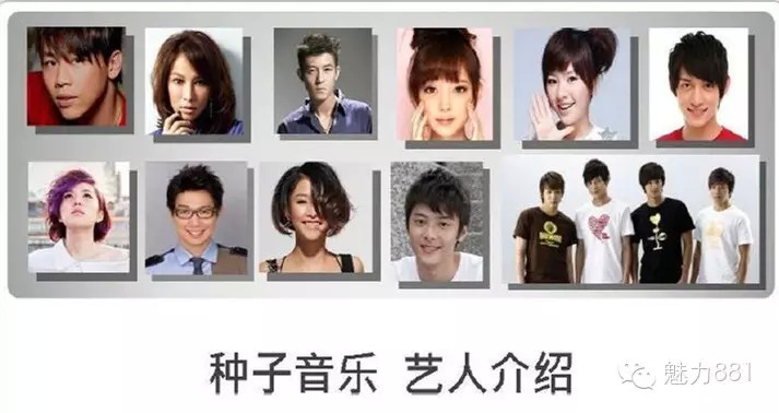 種子音樂公司甫成立張信哲、周傳雄(小剛)、黃鶯鶯、于臺煙等唱銷天王天后即紛紛投身,天王天后的加持讓種子音樂一成立即于華語樂壇打出響亮品牌名號。公司團隊也以清新的音樂制作水平和創意包裝成功營銷,推出專輯張張叫好叫座,笑傲唱片銷售市場。2003年起種子音樂相繼在臺北,北京兩地成立跨兩岸的操作平臺,努力開拓唱片產業,成為唱片業者跟進的指標。隨著公司發展日益蓬勃壯大吳克群、光良、許茹蕓、伊能靜、溫嵐、江美琪、許哲佩、王菀之、周蕙、郭書瑤(瑤瑤)、曾昱嘉、曹格、馬修連恩、陳冠希、張棟梁、戴佩妮等集結音樂創作與歌唱實力兼具的華語樂壇重要歌手,紛紛投靠或加盟種子音樂,成功再創事業高峰。種子音樂集團為華人娛樂產業重要的指標,以先驅姿態縱橫唱片市場,在實體唱片產業日漸勢微,無線增值業務市場不斷擴張的今天,種子音樂集團早在多年前就致力于無線增值業務市場,不拘泥于形式,將各種可能無限發揮,在新的市場環境下再展音樂產業輝煌!