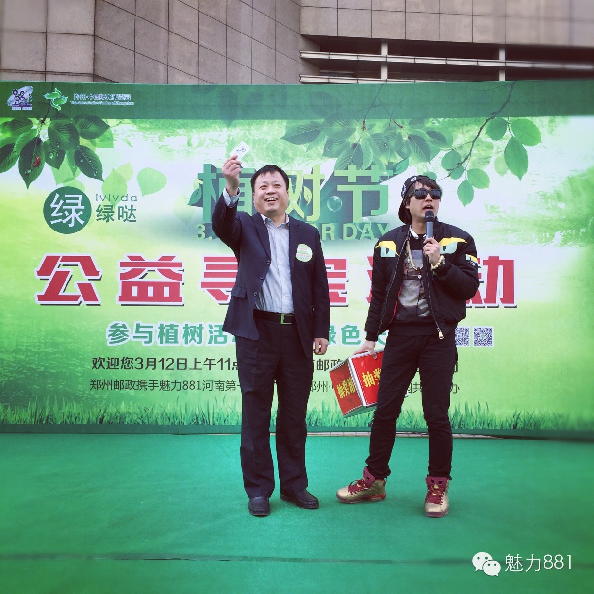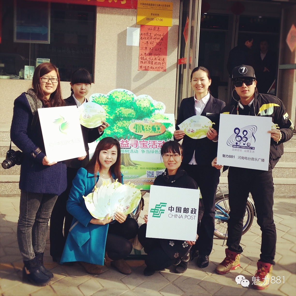3月12日植樹節,魅力881河南第一音樂廣播攜手鄭州郵政一同打造的“綠色尋寶大作戰”公益活動圓滿舉行!今天有四位DJ帶領四隊聽眾前往市區指定郵政網點,尋找本次活動限量定制的環保明信片。首先要為獲勝的小伙伴鼓掌,同時也要感謝所有參與本次活動的親們,你們都棒棒噠!本次公益活動的每一位參與者都是綠色環保小戰士,有你們在,綠城的樹一定會更綠,天一定會更藍!最后要特別感謝本次活動合作方鄭州郵政、綠博園的大力支持,再次感謝魅力881聽眾的參與!