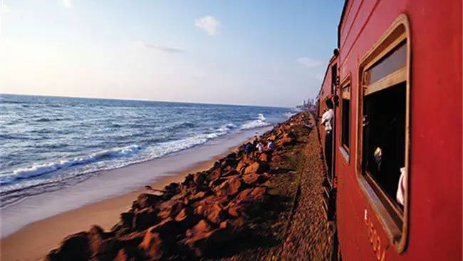 斯里蘭卡的海上火車并不是凌駕于大海之上,它的鐵軌距離海岸線很近,有的地方大概只有一米到兩米的距離,坐在火車里面,靠著車窗戶,車窗外面就是一望無際的印度洋,溫暖的海風彌漫在車廂內。這是那么的美妙與愜意,伴著海風的溫柔與味道,火車內的乘客感覺到他們所乘坐的火車真的就像開在大海之上一般。