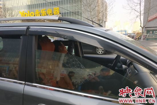 記者根據楊華民手指的方向看去,國貿360商場門前的花園路上,停車等人的機動車排起了長龍。記者與民警走到一輛車牌號為豫A559B8的機動車前看到,司機正在座位上睡覺,而其車輛則是停在了路中間的位置,嚴重影響了道路的暢通。