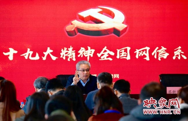 映象網快訊(記者 王邵怡 阮海峰/文 段晉哲/圖)根據中央網信辦統一部署,11月9日上午,全國網信系統學習貫徹黨的十九大精神宣講報告會在大象融媒報告廳隆重舉行,中央網信辦網絡社會工作局副局長易滌非作報告,河南省委網信辦副主任蔡新民主持報告會。