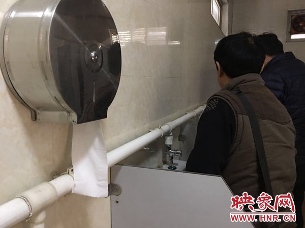 滎陽市生態廊道綠化管理處書記樊國安檢查公廁里擦手紙配備情況