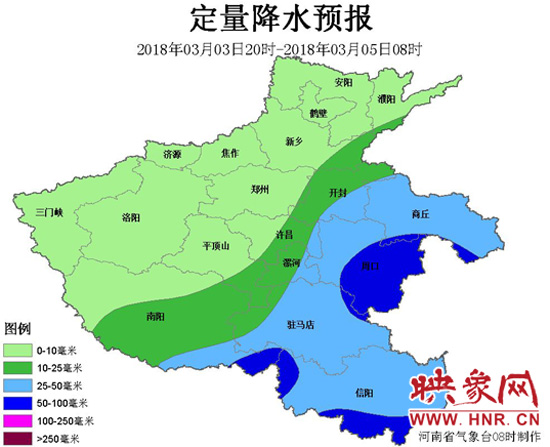 此次過程全省大部分地區有小到中雨,主要降水時段出現在3日夜里-4日白天,其中東部、南部有大雨,局部暴雨,并伴有雷電。過程雨量豫東、豫南達20-50毫米,其它地區5~20毫米,最大雨量可達10-20毫米/小時。另外,4日全省還會有4-5級偏北風,最高氣溫較前期下降7-9℃。