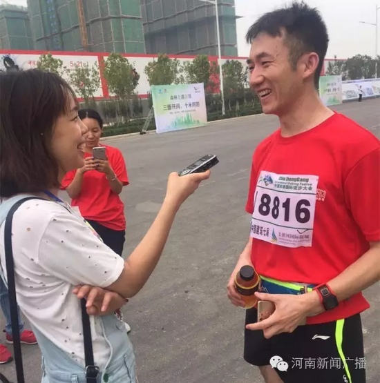 僅僅過了2小時20分,終點迎來第一位沖向終點的高先生,氣喘吁吁的他在接受我們采訪時依然腳步穩健。