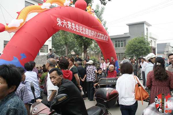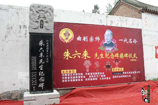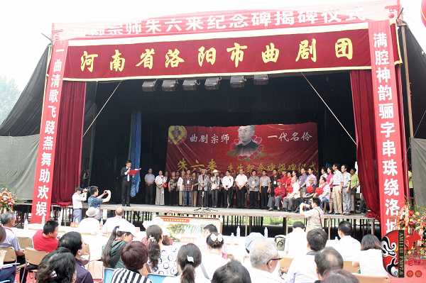 5月9日,由河南省藝術研究院、省戲劇家協會、省戲曲表演學會、洛陽市文廣新局、洛陽市戲劇家協會、洛陽市曲劇院主辦的,曲劇宗師?一代名伶朱六來先生紀念碑揭碑儀式在其故里洛陽市關林鎮大東村舉行。來自省內的著名戲劇評論家、劇作家馬紫晨,河南省藝術研究院院長方可杰,戲劇評論家譚靜波,曲劇老藝術家劉衛生、馬騏、牛長欣、高桂枝、郭鳳娥等,以及各地市兄弟院團代表參加了本次揭碑儀式。同時,著名曲劇表演藝術家“曲劇泰斗”馬騏,有南牛北馬之稱的南牛著名曲劇表演藝術家牛長欣,以及各兄弟院團的著名演員獻上了精彩的專場演出。