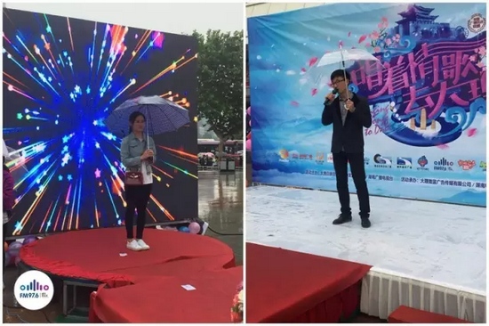 路飛冒雨主持,心中火熱的根本不需要雨傘啦!