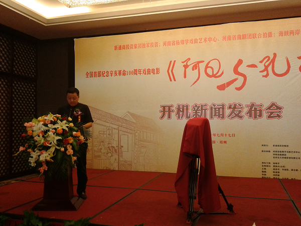 7月17日上午,由新通商投資集團獨家投資、河南省楊帥學戲曲藝術中心和河南省曲劇團聯合拍攝的紀念辛亥革命100周年戲曲電影《阿Q與孔乙己》開機新聞發布會在省會鄭州隆重舉行,該片拍攝完成后將在中央電視臺、全國各省、市電視臺和城市院線、農村院線以及海外相繼發行播出。