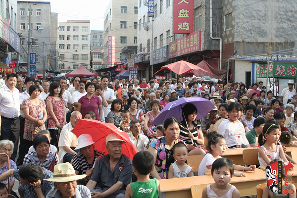 本次活動(dòng)是在河南進(jìn)行的首場(chǎng)活動(dòng),當(dāng)天非常炎熱,但是大家看戲的熱情絲毫沒有減弱。街道里擠滿了前來看戲的居民,大家一邊鼓掌一邊揮動(dòng)著扇子,別有一番風(fēng)味。整個(gè)活動(dòng)持續(xù)兩個(gè)半小時(shí),隨著演出的進(jìn)行,觀眾的熱情不斷高漲,人群中時(shí)而掌聲如雷,時(shí)而捧腹大笑。活動(dòng)結(jié)束之后,觀眾依然不肯離場(chǎng),當(dāng)?shù)責(zé)崆榈膽蚯鷲酆谜呒娂娚吓_(tái),繼續(xù)著自?shī)首詷返幕顒?dòng)。