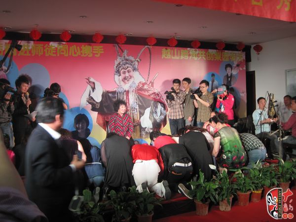 據了解,這是自1994年第一次收徒起,谷秀榮18年來最隆重的一次收徒儀式,66歲的她在收徒現場激動不已,她說:“我今天不是在收徒,而是在交志同道合的好友。”她表示師徒們要攜手為熱愛戲曲的人放聲歌唱。