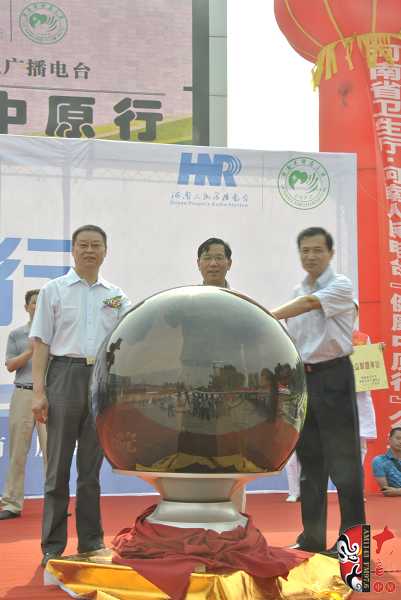 河南省衛生廳副廳長曲杰(左)、河南電臺臺長李新全(中)、河南省腫瘤醫院院長袁立波(右)啟動本次活動