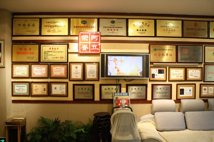滿滿一面墻的獎狀讓每一個來這里的人都能深刻的了解到阿五美食的嚴謹風格,