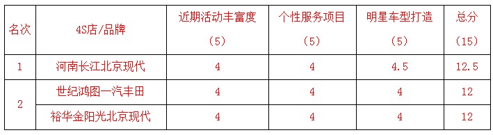 河南長江北京現(xiàn)代、世紀(jì)鴻圖一汽豐田、裕華金陽光北京現(xiàn)代 分列【紅榜】1,2,3名!