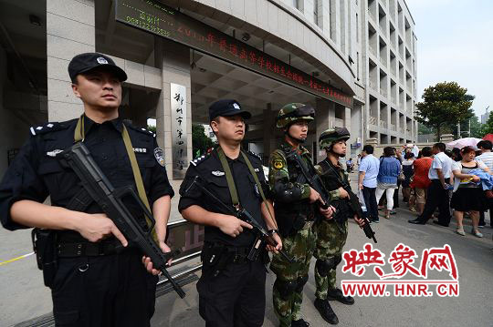 鄭州警方根據全市考區的實際情況進行了警力部署:市內每個考點安排轄區派出所民警6名、交巡警6名、特警4名;上街、中牟、滎陽、新鄭、新密、登封每個考點安排執勤民警16名,其中:派出所民警6名、交警6名、特警4名。為全力服務考生,鄭州警方要求各單位執勤民警在開考前1個小時到達指定崗位,認真履行各項職責,考試結束40分鐘后撤崗。對位于繁華路段、周邊治安復雜或交通擁堵路段的學校有針對性的增派警力,切實加強考點及周邊安全保衛工作。