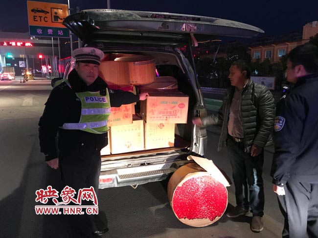 據駕駛員孟某交代,他駕車從商水八里灣走寧洛高速周口站上高速前去縣城送貨,車上共裝有42件煙花爆竹。