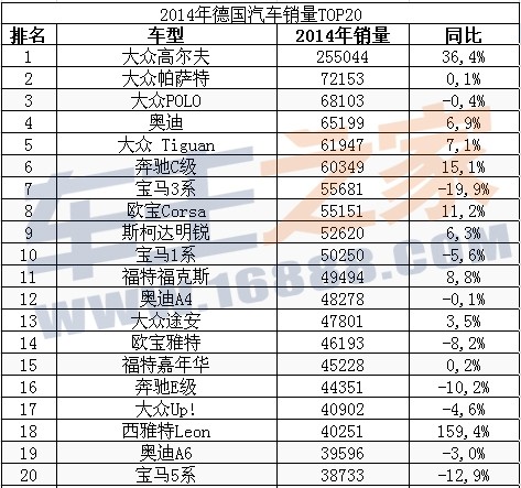 小編剛成為車迷的時候超級羨慕德國人,覺得他們國家有奔馳寶馬保時捷這些牛B汽車,真TMD太幸福了,看看榜單中一水的德國本土品牌,西雅特雖為西班牙品牌,但已經收歸大眾旗下,福特嘉年華雖然掛福特標,但研發生產都在歐洲,估計美國人也不好意思說它是美系車,本土勢力如此強大的情況下,其它品牌車型想擠估計都很難擠進去。