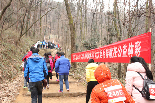 全民健身活動連年開展,并且已經形成全國聯動,區域互動,百姓自動的蓬勃景象,這離不開體彩彩民朋友點滴的愛心匯聚和體彩人不分晝夜的堅持拼搏,為了展示體育彩票的公益性和玩法樂趣,信陽分中心還在開幕式現場搭建了四張大型展板,“公益體彩 快樂操場”“送體育進鄉村”“體彩?新長城助貧困大學生項目”“貧困受災地區愛心捐贈”等等,散發出一縷縷公益光芒,溫暖著寒冬里登山人的心。 “河南體彩攜手京東購物送300萬大樂透代金券”“購買頂呱刮彩票 搶百萬紅包 贏華為手機活動”,特別吸引了年輕登山人群的圍觀和關注。信陽分中心開展戶外即開型銷售主推“金雞納福”新年套票,雞年登雞公山購買“金雞納福”頂呱刮彩票有著特殊的意義,購買滿30元還有登山“能量包”相送,為健身登高增添動力。