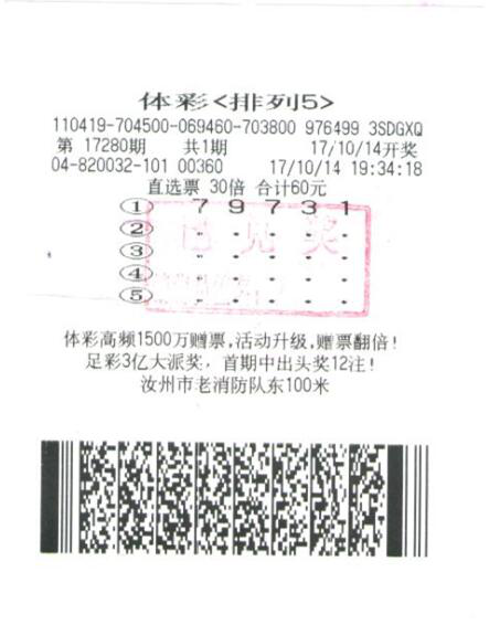 10月14日晚開獎的排列五第17280期,全國共開出一等獎47注,位于河南汝州市老消防隊東100米的4104820032101網點彩民中得35注,其中30注被彩民童先生中得。10月16日上午,童先生來到河南省體育彩票管理中心兌獎,獎金共計300萬元。