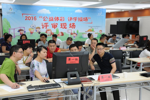 評審工作分四組進行,每組評審人員首先對報名學校提供的基本情況進行逐項了解,同時,通過學校提供的校園、現(xiàn)有操場、器材室等實景照片,對是否提供捐贈進行綜合打分。最后由工作人員對每組評委的打分進行匯總,按照每所學校得分高低進行排序,前25名的學校入圍2016“公益體彩 快樂操場”(河南)實地考察名單。