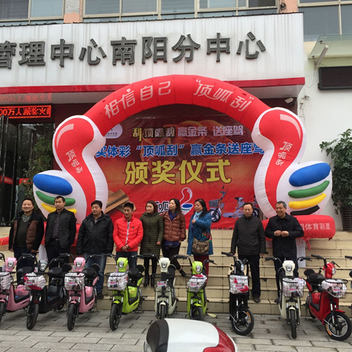 10月29日 河南體彩鶴壁分中心向獲獎彩民頒發15輛電動車
