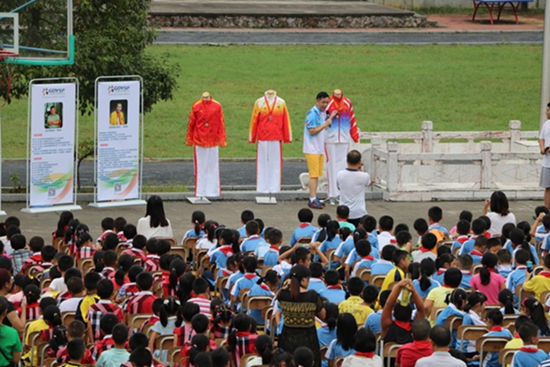 在建設美麗鄉村的社會背景下,“冠軍課堂”鄉村行是廣東省體彩中心、廣東省青少年體育聯合會對“公益體彩·快樂操場”活動的延伸,由國家級跳水教練、奧運冠軍教練胡恩勇帶領世界冠軍及優秀運動員,歷時4個月,走進9地市的25 所山區中小學校,為那里的師生帶去體育器材,上一堂公益體育課,部分優秀運動員還會在受助學校支教半年。活動為孩子們樹立了“愛運動,強體魄”的觀念,讓缺少體育器材和專業體育教師的孩子們都能“每天快樂運動一小時”。