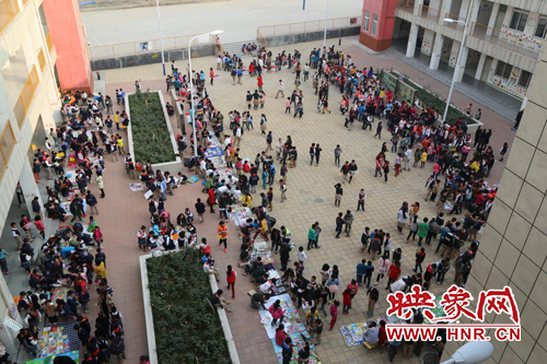 為開(kāi)展好這次活動(dòng),經(jīng)開(kāi)區(qū)外國(guó)語(yǔ)小學(xué)教學(xué)副校長(zhǎng)譚洪岐,早在11月2日的周一例會(huì)上,就專門帶領(lǐng)老師們召開(kāi)圖書“跳蚤市場(chǎng)”活動(dòng)預(yù)備會(huì),對(duì)人員分工及注意事項(xiàng)等都做了明確規(guī)定。另外,對(duì)海報(bào)及攤位招牌設(shè)計(jì)、圖書收集、展臺(tái)布置,到圖書銷售等環(huán)節(jié)也都進(jìn)行了精心策劃。下午第一節(jié)課后,圖書“跳蚤市場(chǎng)”活動(dòng)正式開(kāi)始。活動(dòng)中,學(xué)生們分工合作,推銷手段五花八門:有的打出招牌“大甩賣,全場(chǎng)五折”,有的推出了“買一本送一本”優(yōu)惠套餐,還有的則搞起了“買書送棒棒糖、作業(yè)本”的促銷活動(dòng)……同學(xué)們個(gè)個(gè)熱情高漲,所售書籍琳瑯滿目,從名家名著到人物傳記,從作文大全到漫畫童話,從歷史地理到學(xué)習(xí)工具書,還有各種雜志期刊,整個(gè)“跳蚤市場(chǎng)”熱鬧非凡。活動(dòng)還吸引了部分教師和學(xué)生家長(zhǎng)參與,他們和學(xué)生們一起,紛紛來(lái)到“跳蚤市場(chǎng)”淘書,討價(jià)還價(jià),不亦樂(lè)乎。活動(dòng)最后,同學(xué)們還評(píng)出了“最佳展位”和“最佳營(yíng)業(yè)員”。