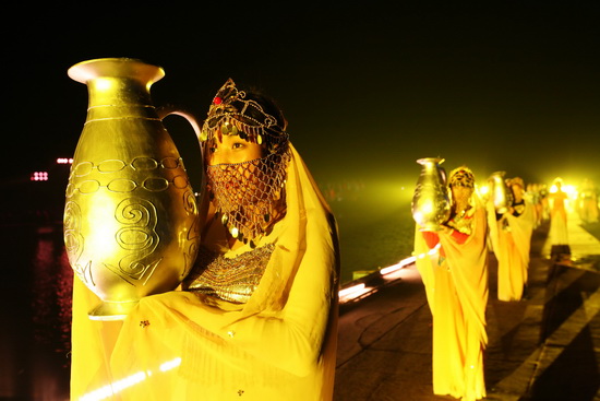 整個演出運用大量的科技手段,制造出夢幻的效果,把人們的記憶拉向一千多年前的那個輝煌朝代。