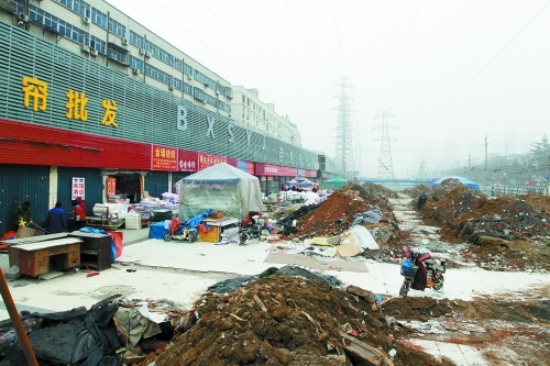 2015年12月22日,京廣路街道辦事處發出《致轄區市場及市場商戶的一封信》,稱“全部外遷工作必須在12月31日之前完成”。OTO合盛百榮廣場也于12月24日發聲,“為配合政府市場外遷工作,實現整體外遷、和諧外遷,市場將于2015年12月25日開始停止供電。”從12月27日開始,該市場方派出車輛給商戶搬家。