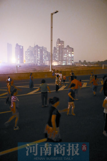 前天晚上7時30分,鄭州市南三環與京廣路交叉口向南500米路西,幾名市民沿著高架橋匝道向二層走去。高架橋二層橋面西側,人們三五成群,大人們邊走邊聊天,小孩兒則在車道上嬉笑玩耍。東側,一名女士大步快速地向北走,“不刮風不下雨,沒事兒就來這鍛煉。”此外,還有30多名市民正在跳廣場舞。