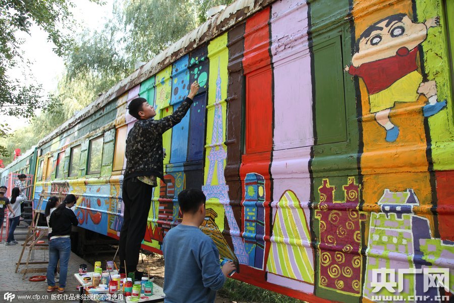 2015年10月10日,鄭州四禾美術中學充分發揮美術生的優勢,對火車車身1進行涂鴉改造,使火車宿舍看起來更加漂亮。