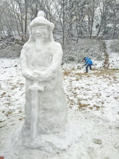 下雪了,堆一個雪人玩玩。首席記者何正權攝影
