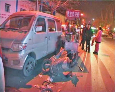 被撞的小吃攤一個是賣肉夾饃的,一個是賣鴨脖的。據賣肉夾饃的攤主說,肇事車司機是一個二三十歲的男子,當時他曾停下來說“到前邊會停下來”,沒想到竟加速跑了。