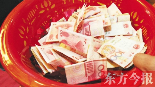 鄭州娶媳婦土豪版彩禮 百元鈔票稱(chēng)三斤