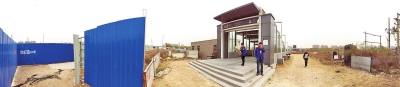 昨天,記者來到博學路地鐵站附近走訪,計劃從明理路出發(fā)到地鐵站內。根據站外工地一位工人的指引,記者進了工地大門后沿著一條由鐵皮圍成的小路一直走,接連拐了七八個彎,步行了十多分鐘后才見到地鐵站。地鐵站外雜草叢生,一片荒涼。站在該地鐵站外向四周張望,看到的全是工地。工地內插著小旗子,還停放著幾臺挖掘機。