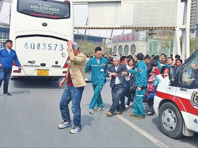 出現場的一名急救醫生說:“車上受傷的乘客共有11人,我們醫院救護車先后去了三次,拉回來8名,30號急救站拉走了3名,現在一人受傷較重,其他幾名都在觀察中。”