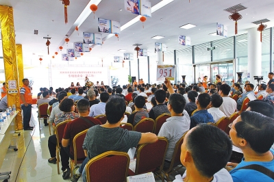 昨天下午1點(diǎn)半,中州大道與柳林東路交叉口西北角上汽車享汽車服務(wù)廣場(chǎng)車享拍鄭州拍賣服務(wù)中心,500名競(jìng)拍人熱情高漲,等候鄭州第二次公車拍賣正式開始。