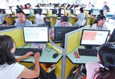 昨天上午9點(diǎn)半,鄭州47中的評卷現(xiàn)場內(nèi),各科評卷教師被分別集中在相應(yīng)的機(jī)房里閱卷評卷,十分安靜。