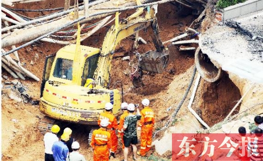 塌方發生時,一男一女被民警和熱心市民救出。目擊者稱,坑中仍有一名女士和小孩,但警方經過排查,除了名叫張帆的女士,尚未發現有人員失蹤。今報三批記者輪班蹲守現場,截至3日2時,救援在經歷了近30個小時后,尚未找到張帆。□東方今報記者 夏萍 見習記者 靳亞東 宋迎迎 攝影 首席記者 袁曉強 張曉冬 沈翔 邱琦
