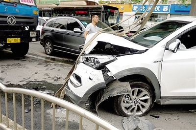 目擊者范先生稱:“當時由南向北是綠燈,由東向西是紅燈,白色轎車在華山路上由南向北直行,路過我身邊時,轎車前有一老太太手里提著東西也在由南向北走,轎車速度有點兒快,我看到司機在車內亂晃腦袋,看樣子司機像是突然犯病,行為很不正常,車子像瘋了一樣向東北角開去,還有可大的剎車聲。”