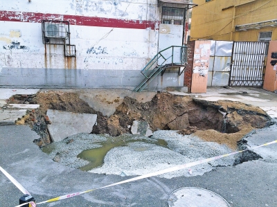 王先生說,今年7月,該處的供水管道曾爆管過一次,但當時該處只發生一次小范圍塌陷,坑也沒這么深。沒想到,時隔2個月,該處再次管道爆裂、地面塌陷。