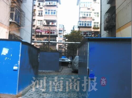 根據(jù)市民的反映,11月8日上午,河南商報記者來到位于百花路上的五棉社區(qū)。剛一進門,小區(qū)內(nèi)一間間活動板房就顯得格外扎眼,每個占地5~10平方米左右,大小不一,門上都有一把大鎖鎖著。在小區(qū)門口也建了兩個板房,只留下一輛車通過的空間。