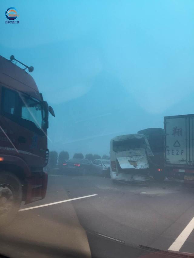 今天(11月14日)連霍高速西向東方向,距開封下站口3.5公里左右,發生多車連環追尾事故,車損很嚴重,有人員受傷。